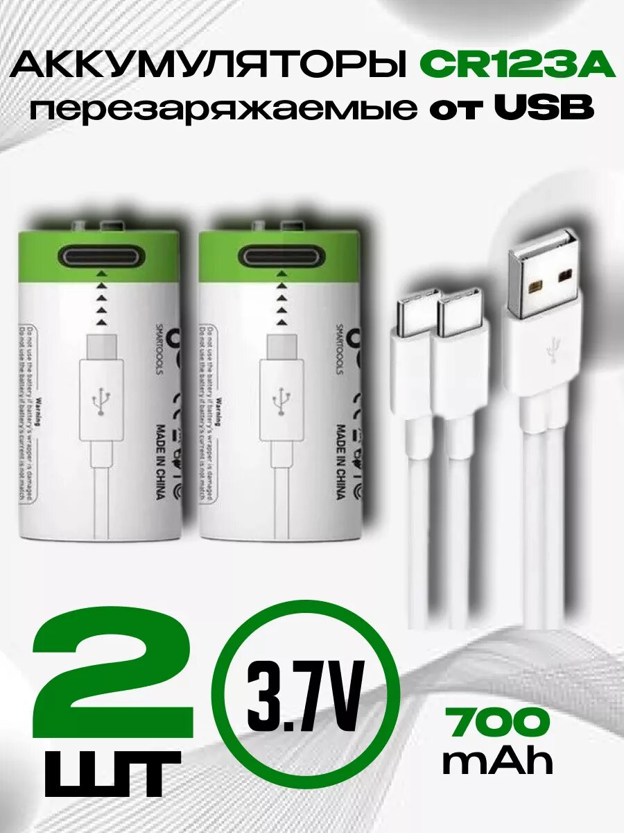 Аккумуляторы CR123A 3.7V, 700 мАч зарядка от USB Type-C информация: