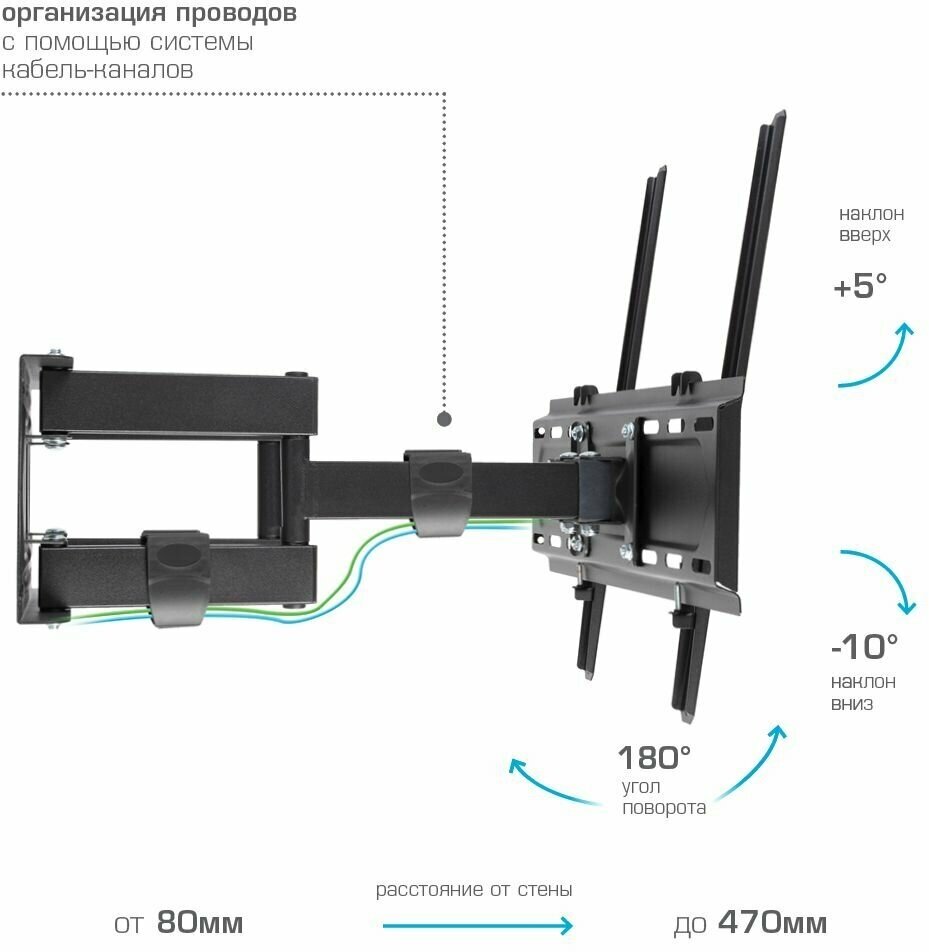 Кронштейн для телевизора 32"-90" ONKRON SM6 настенный, наклонно-поворотный, до 50 кг, чёрный