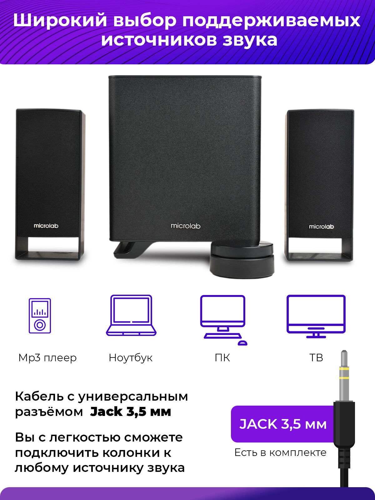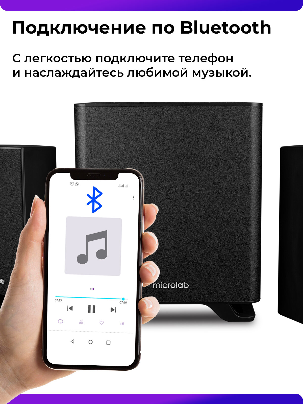 Колонки с сабвуфером Microlab M-600BT Black акустическая стерео система 2.1 .40Вт,Bluetooth 3.0, пульт ДУ информация: