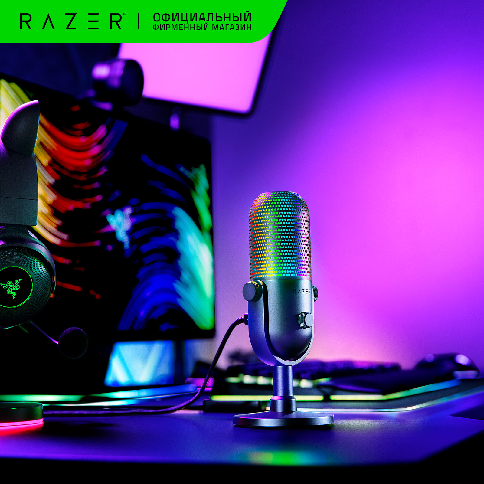 10 цен на Игровой микрофон для компьютера Razer Seiren V3 Chroma черный (RZ19-05060100-R3M1)