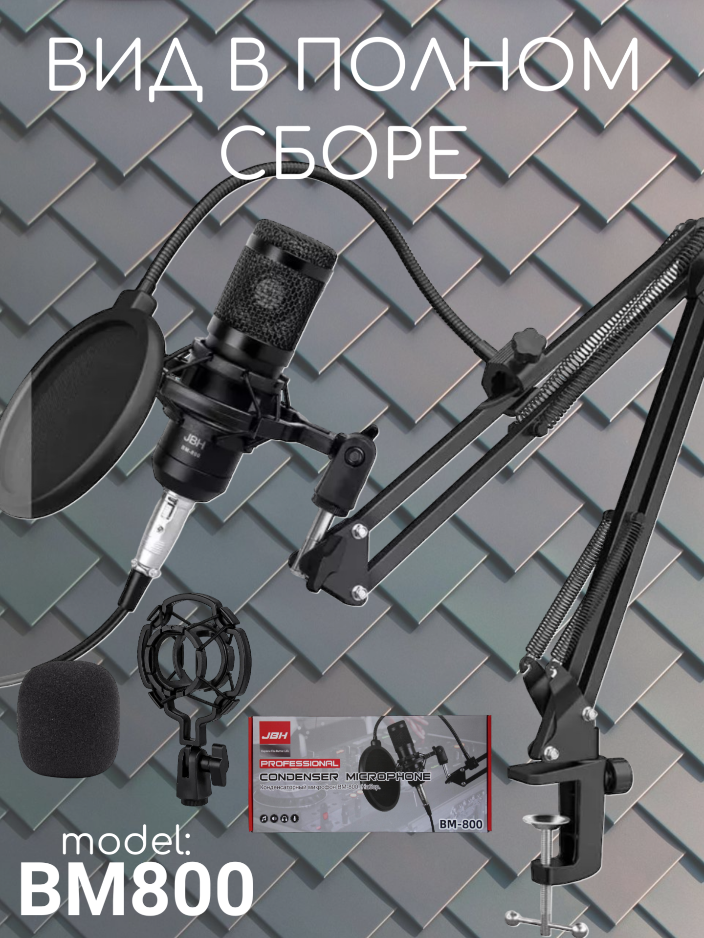 Профессиональный микрофон BM 800 с POP-фильтром / Condenser Microphone для компьютера / черный / TS - Store 2 500 ₽