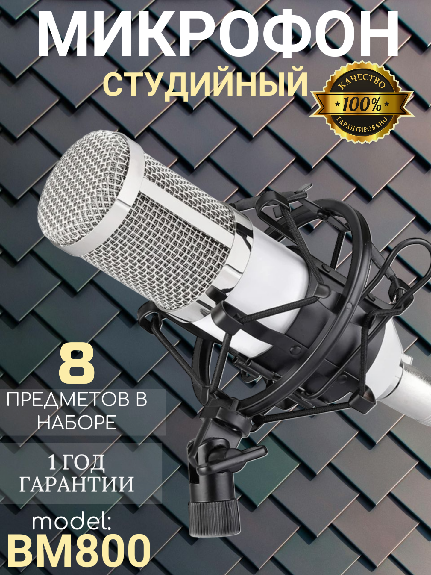 Профессиональный микрофон BM 800 с POP-фильтром / Condenser Microphone для компьютера / белый / TS - Store 2 500 ₽