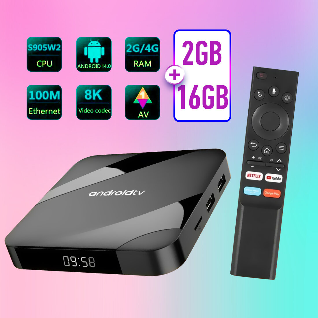 ТВ-приставка смарт-ТВ TV98 PLUS, Android 14, H313, 1 ГБ, 8 ГБ, 2 ГБ, 16 ГБ, AV1, 8K, двойной Wi-Fi, 6 ТВ-приставок, медиаплеер, ТВ-приставка