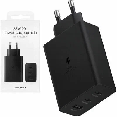 Сетевое зарядное устройство Samsung EP-T6530NBEG 65W 2xType C + USB, черное 4 930 ₽