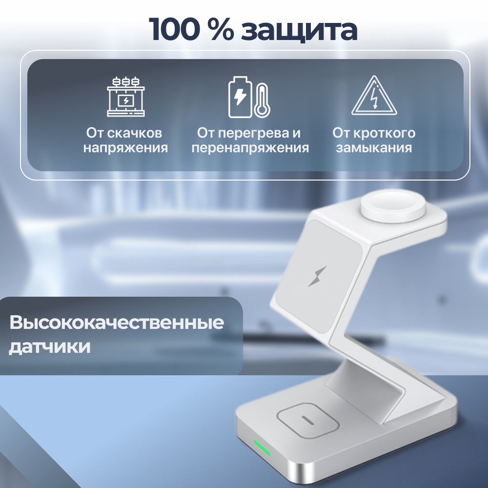 Магнитная беспроводная зарядка для iPhone 3 в 1 белая, док станция для Айфон, AirPods, Apple Watch информация: