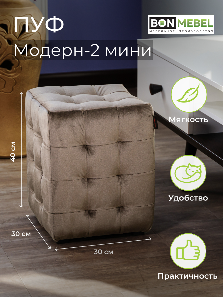 Пуфик БонМебель Модерн-2 мини, кофе, ткань вельвет, 30х30х40 см, пуфик информация: