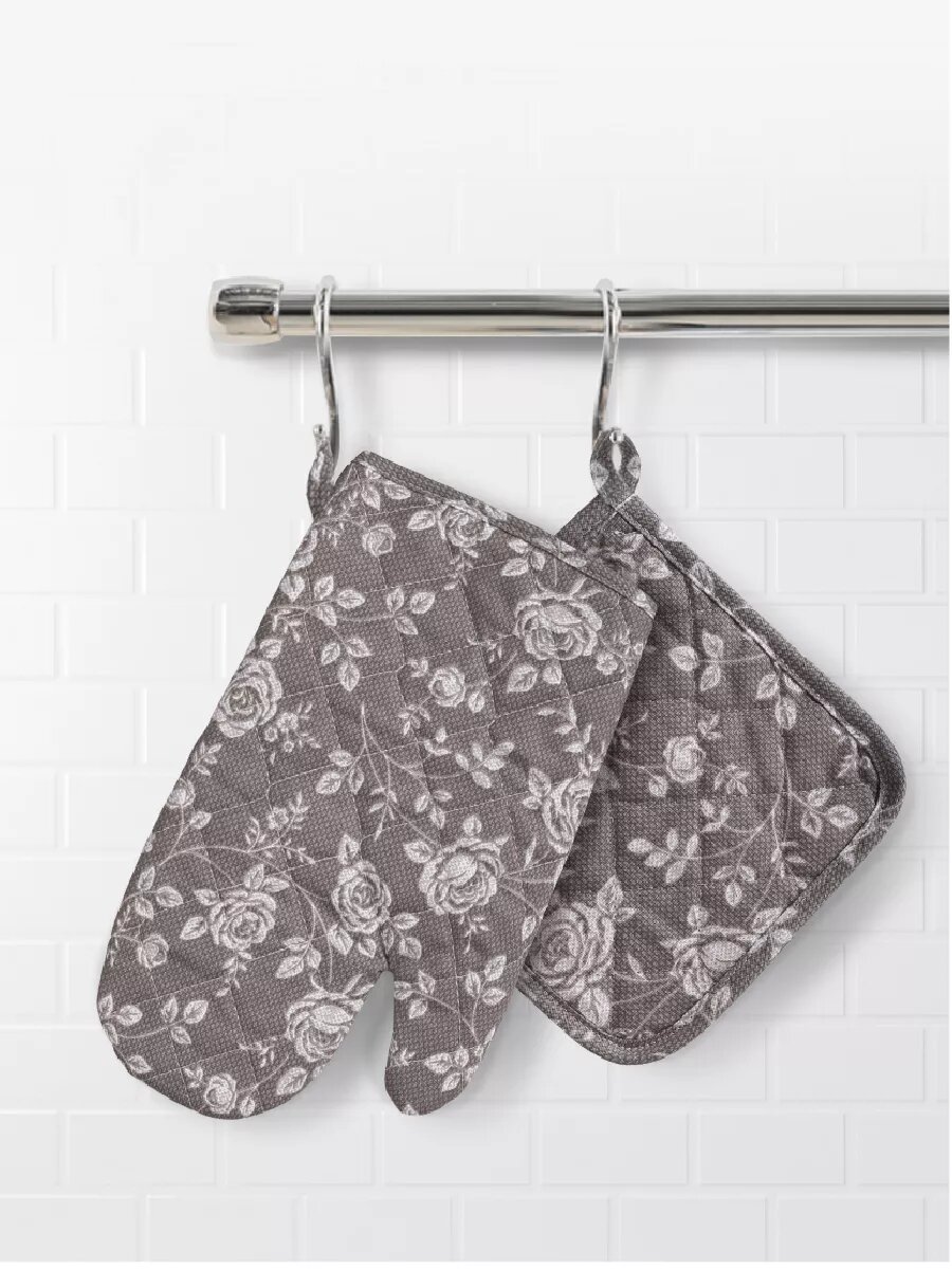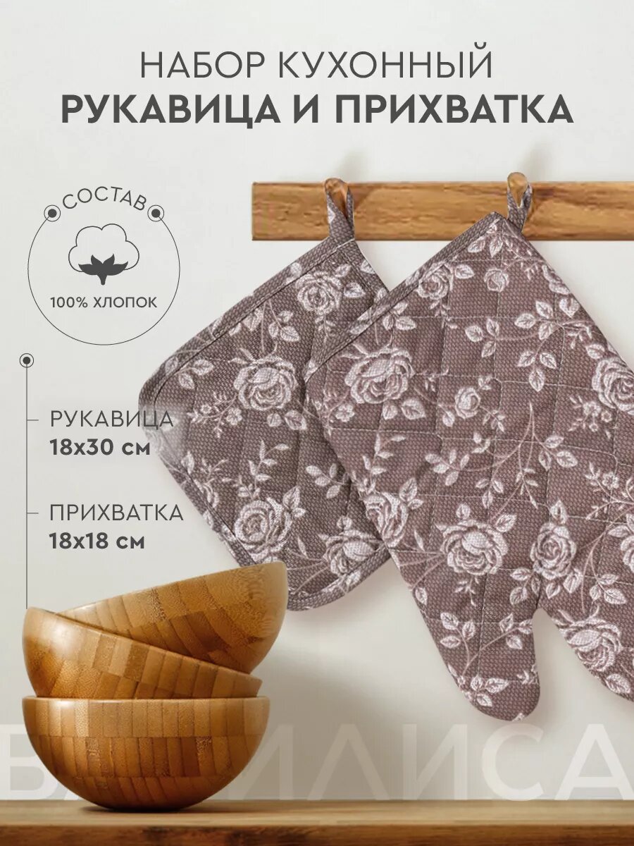 10 цен на Набор кухонный Василиса рукавица + прихватка, Рогожка, хлопок 100%, Розы на льне