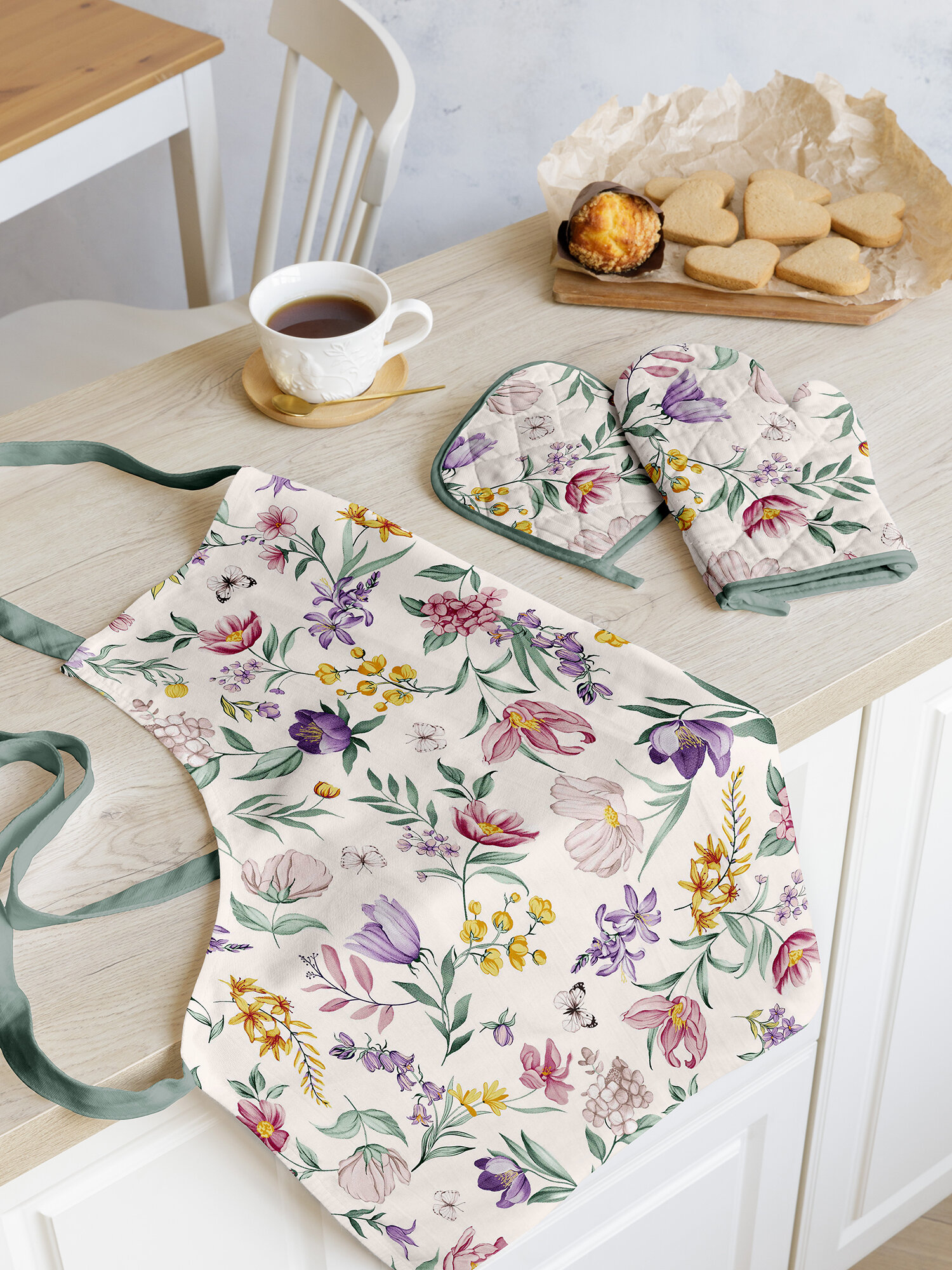 Комплект кухонный рогожка (прихватка 18х18, прихватка-рукавица,18х28, фартук 60х70) "Mia Cara" рис 14057-1 Душистый пион 424 ₽