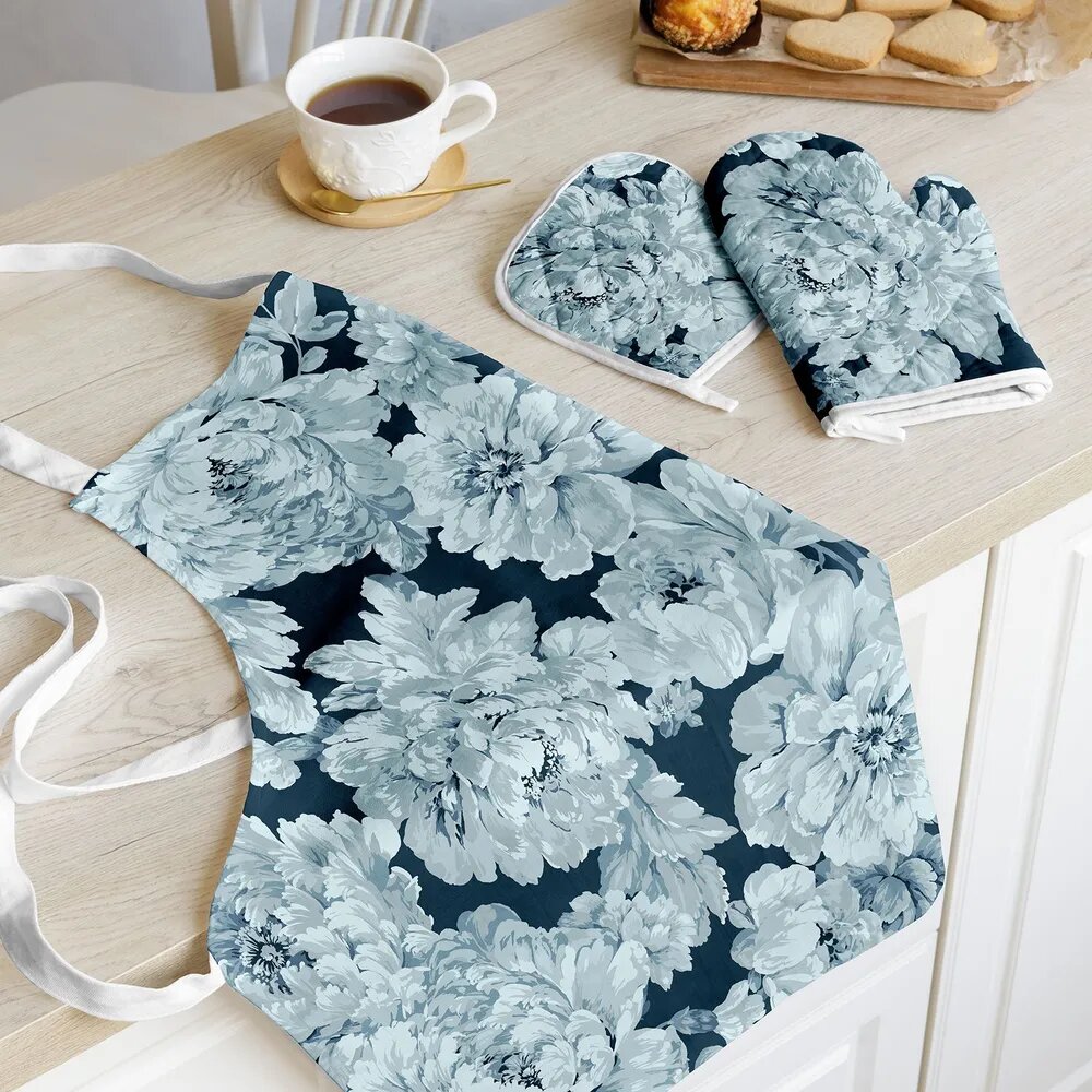 Подарочный набор прихватки для кухни (прихватка 18х18, прихватка-рукавица,18х28, фартук 60х70) "Mia Cara" рис 14057-1 Душистый пион 463 ₽