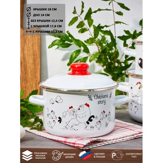 Кастрюля эмалированная с крышкой Chickens stories 3,0л ТМ FOOD ATELIER 1 399 ₽