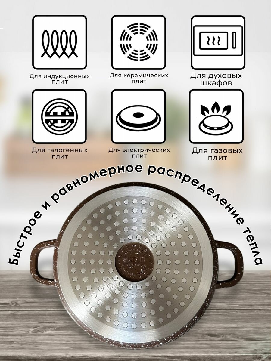 Кастрюля с антипригарным покрытием Kelli, гранит, 4,5 л, коричневый 3 168 ₽