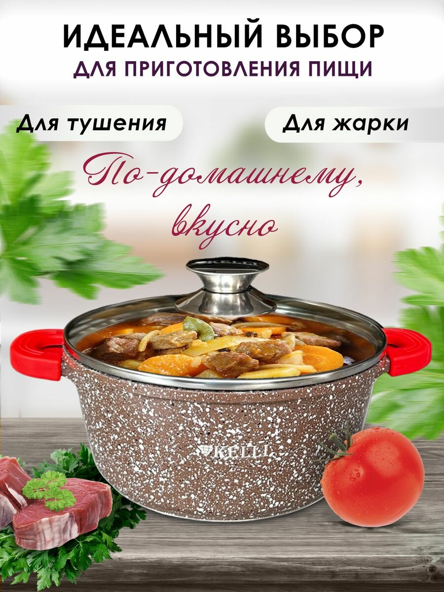 Отзывы на Кастрюля с антипригарным покрытием Kelli, гранит, 2,5 л, коричневый