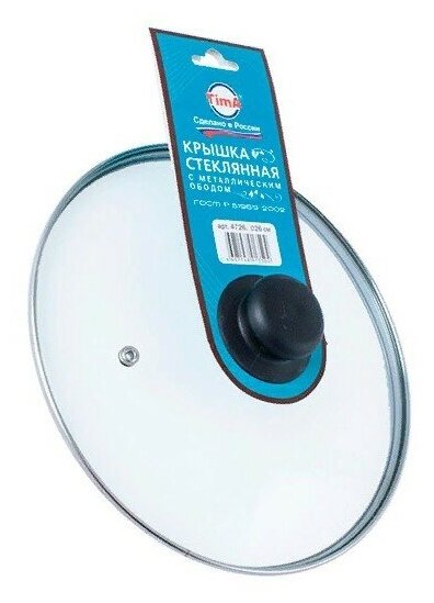 Крышка стеклянная с ручкой и металлическим ободом 28см. 4728 (Tima) 500 ₽