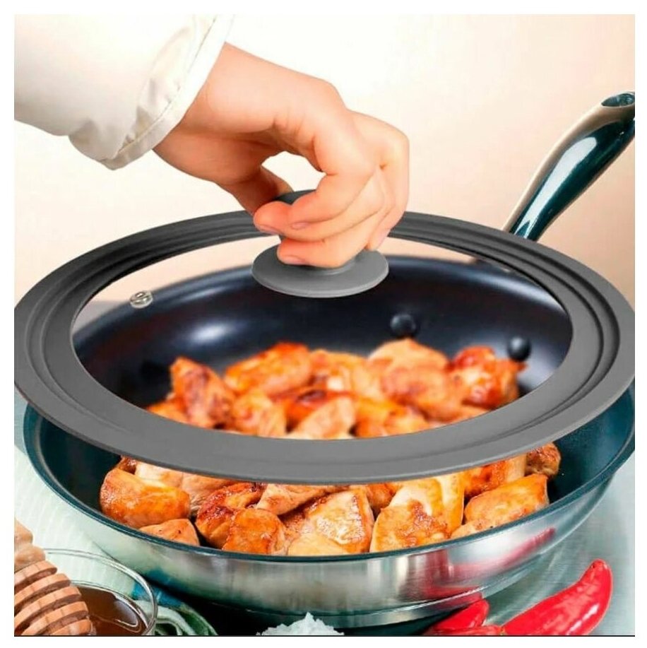 Отзывы на Крышка для сковороды и кастрюли DASWERK универсальная, 3 размера, 24-26-28 см, антрацит 607589