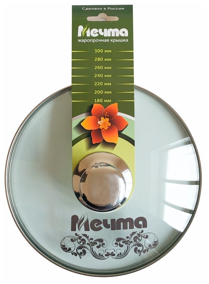 Крышка стеклянная для кастрюли и сковороды 28 см, Мечта