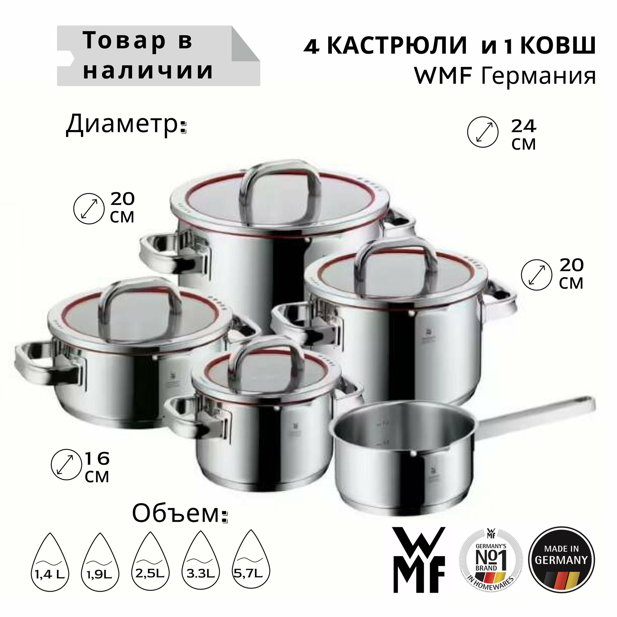Набор посуды из нержавеющей стали из 4-х кастрюль с крышками и ковша Function 4, стальной, серия Наборы посуды, кастрюли и все для приготовления, WMF, 8900547704 информация: