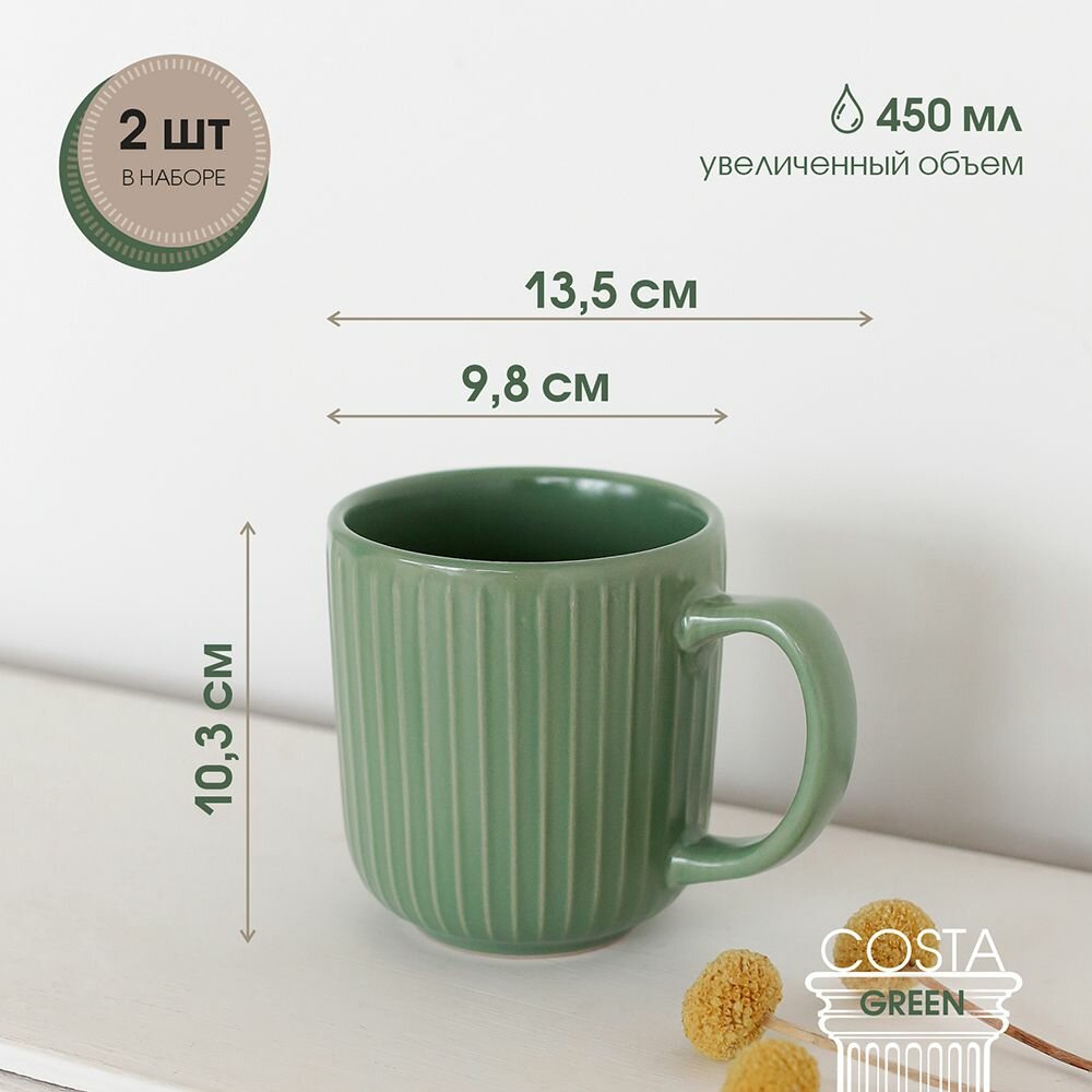 10 цен на Набор кружек 2шт 450мл керамика "Costa green" парные кружки кружка большая для чая кофе какао
