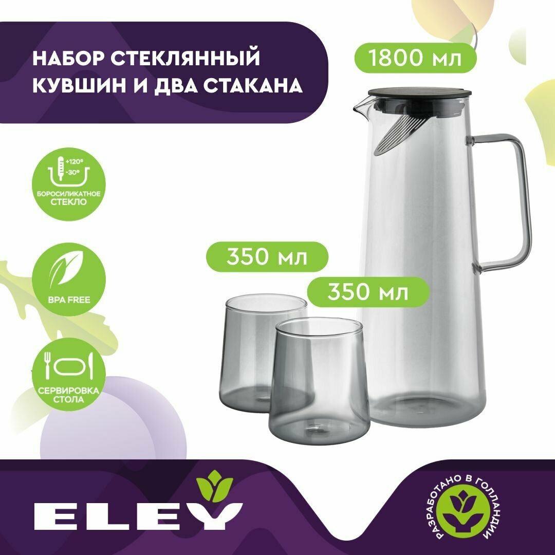 Отзывы на Набор для воды 3 предмета ELEY ELJUG8917G Кувшин 1800мл, стаканы 350мл, стекло