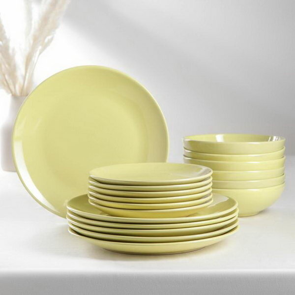 Отзывы на Набор тарелок керамических "Пастель",18 предметов: 6 тарелок d=19 см, 6 тарелок d=27 см, 6 мисок d=19 см, цвет жёлтый