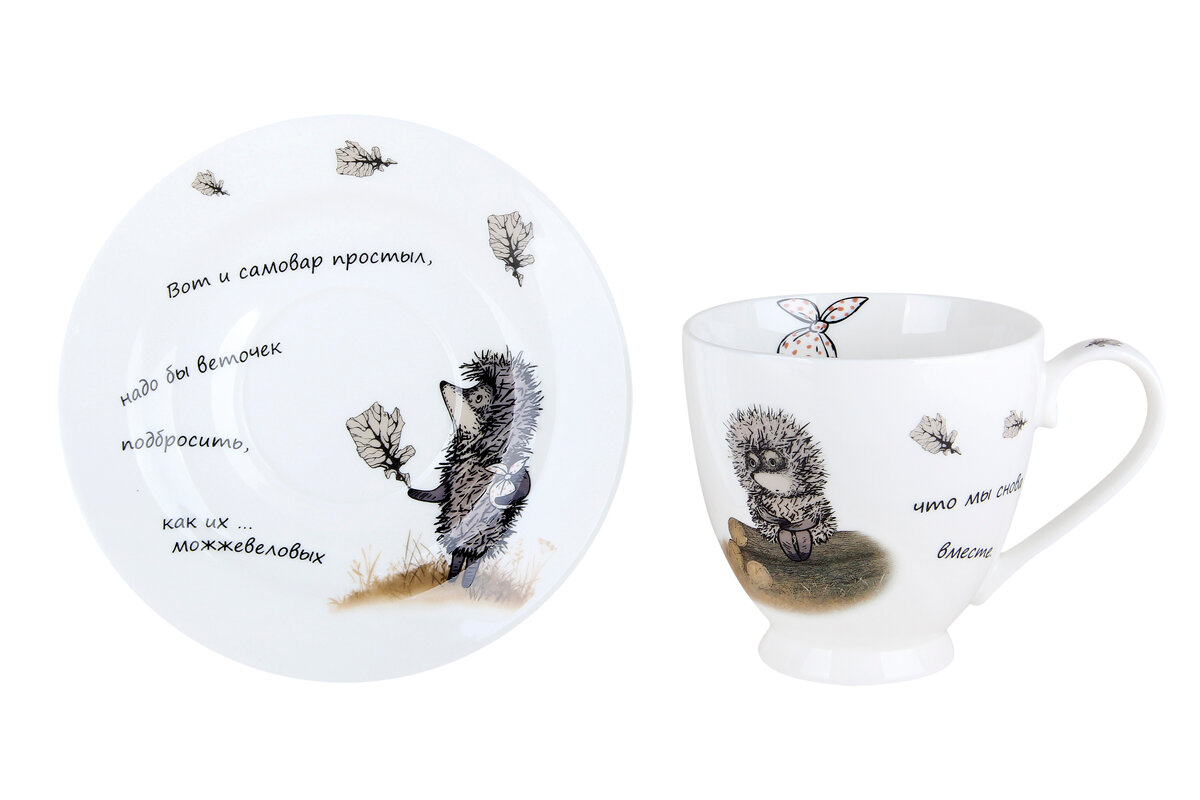 Чайная пара фарфор 440 мл Ежик в тумане в подарочной упаковке