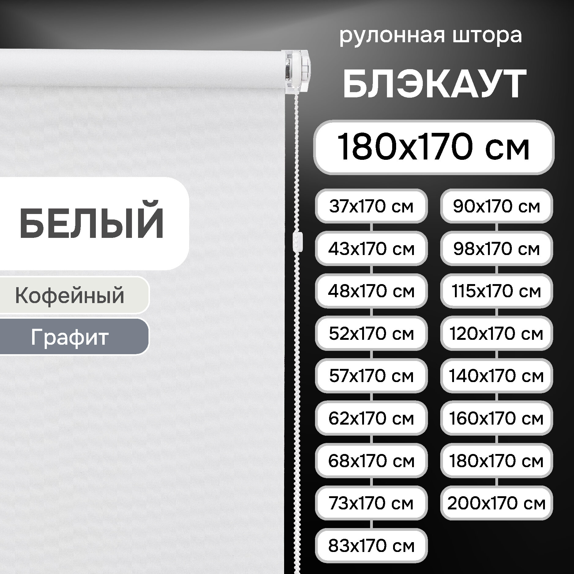 Рулонные шторы Blackout LUX, Белый 180х170