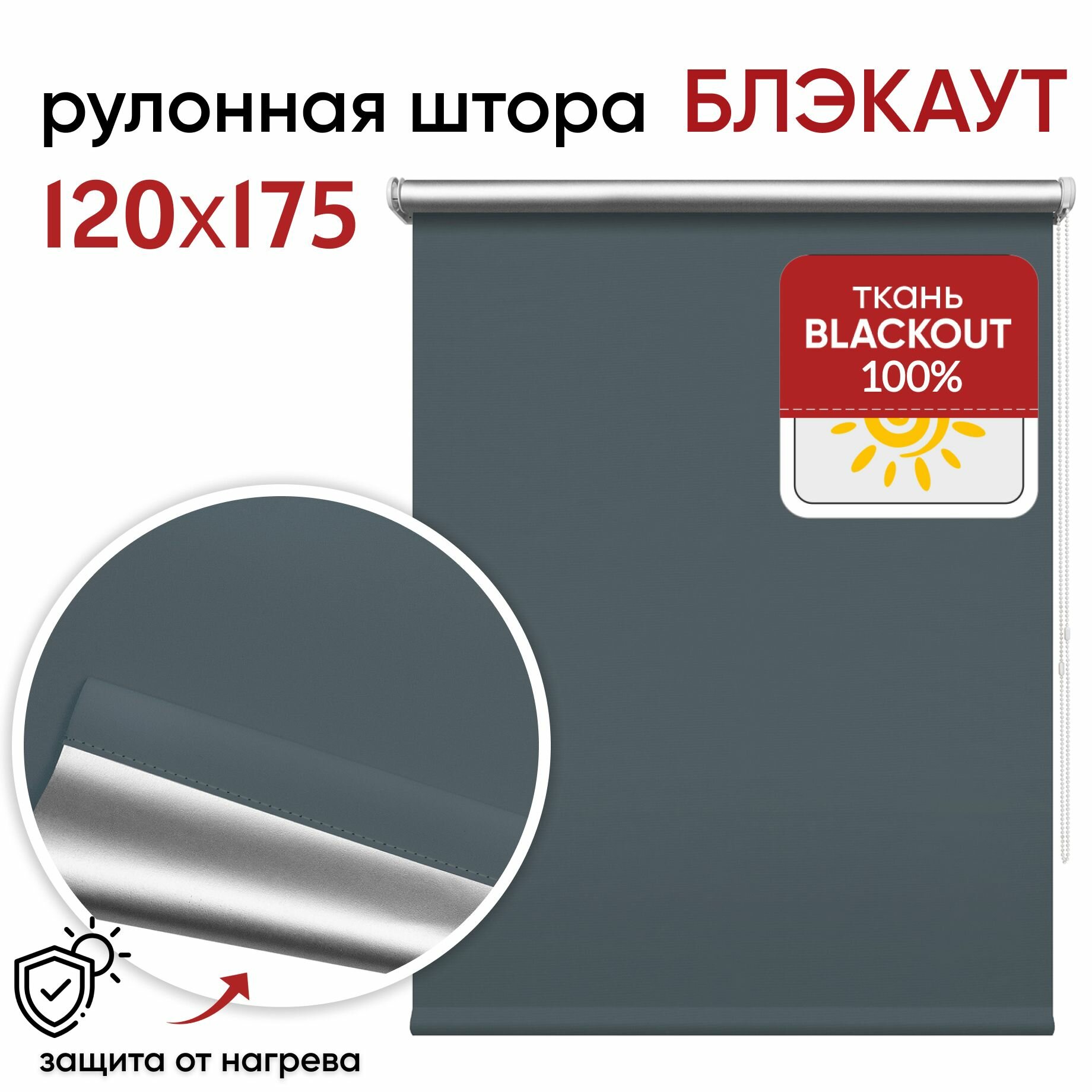 10 цен на Рулонная штора УЮТ блэкаут светонепроницаемая 120 см высота 175 см, Сильвер графит, полиэстер, затемнение 100%