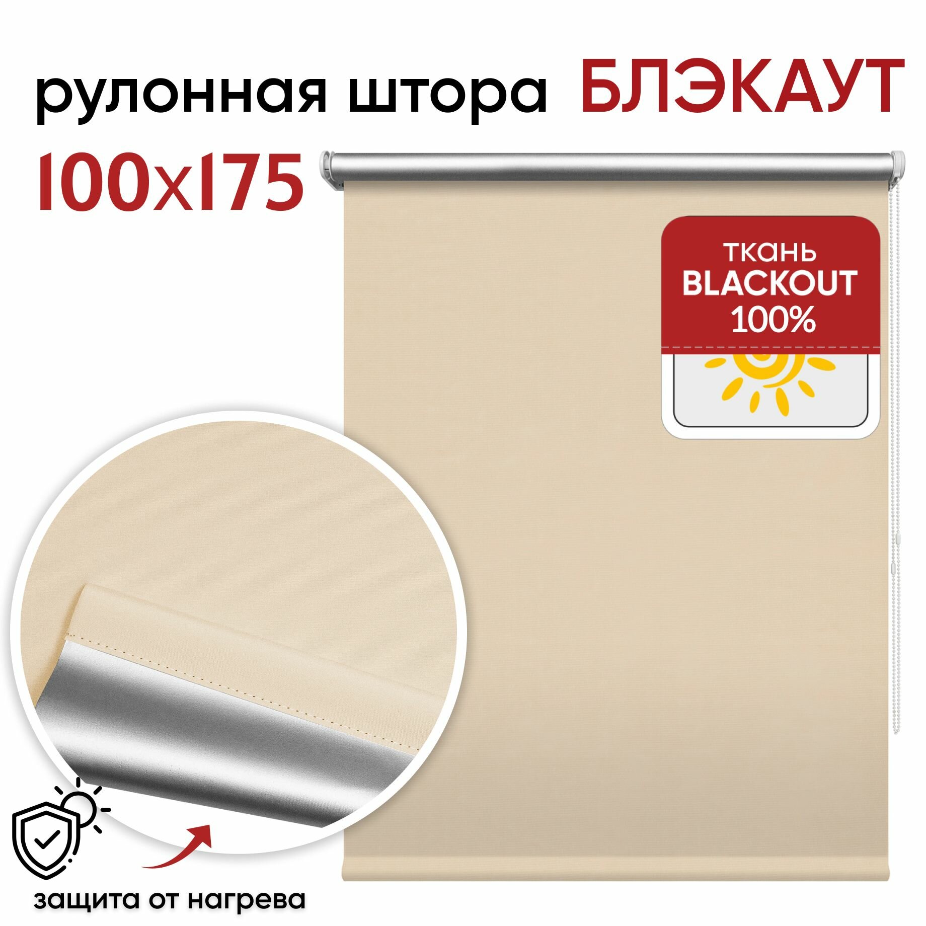 Рулонная штора УЮТ блэкаут светонепроницаемая 100 см высота 175 см, Сильвер бежевый - рулонные жалюзи, затемнение 100% 4 100 ₽