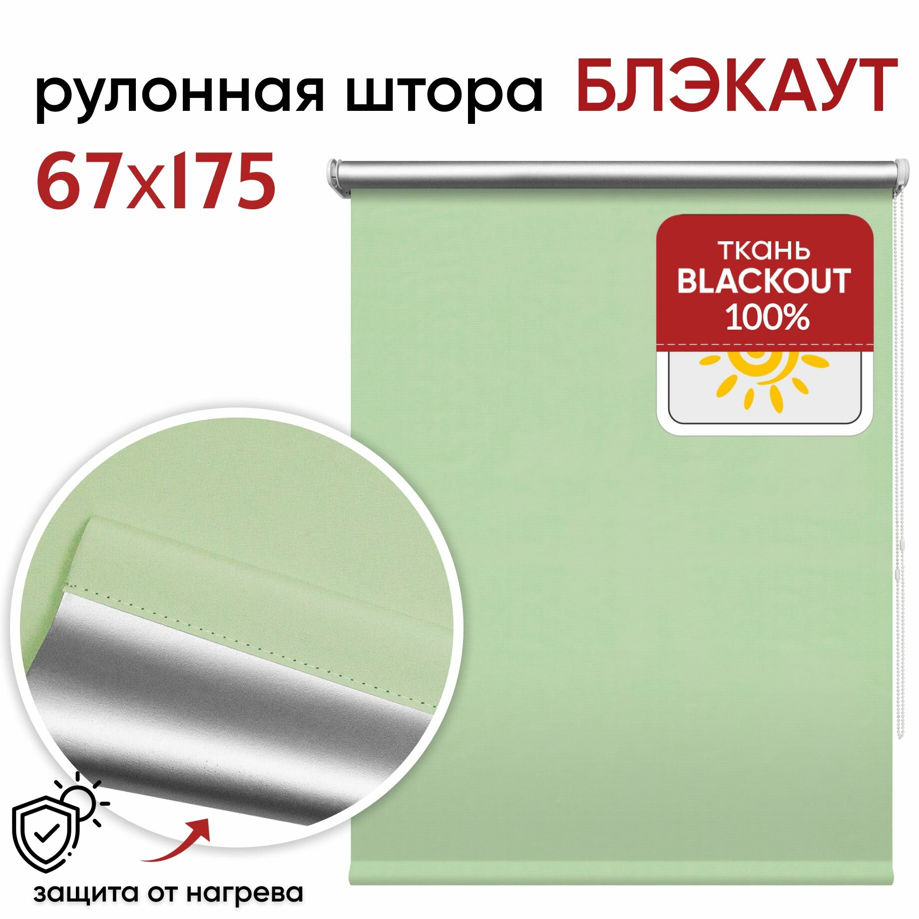 Рулонная штора УЮТ блэкаут светонепроницаемая 67 см высота 175 см, Сильвер фисташковый, полиэстер, затемнение 100% информация: