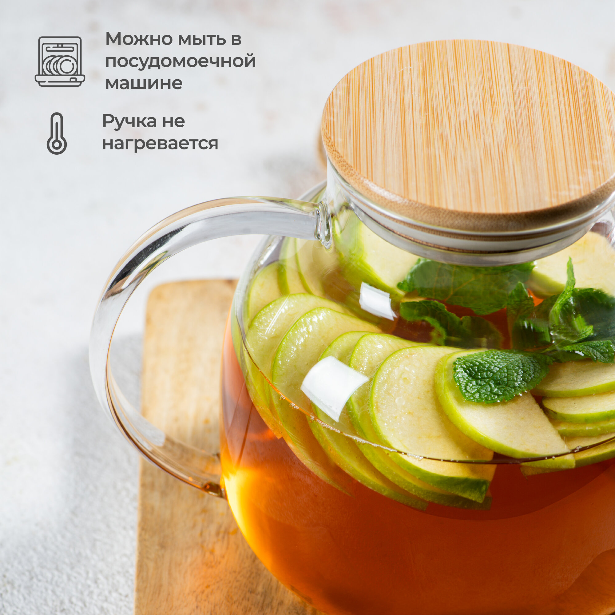 10 цен на Чайник заварочный стеклянный Unifico с бамбуковой крышкой 900 мл.