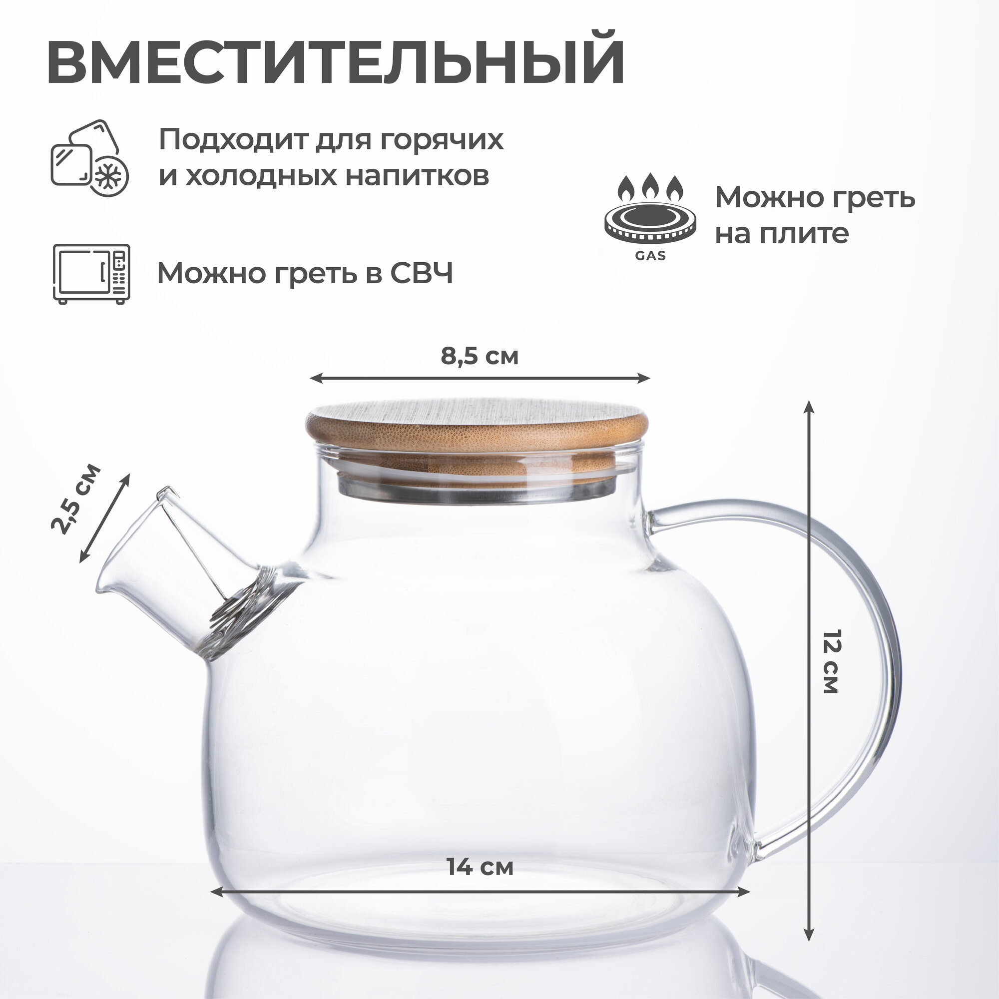 Чайник стеклянный заварной 800мл с ситечком из нержавеющей стали