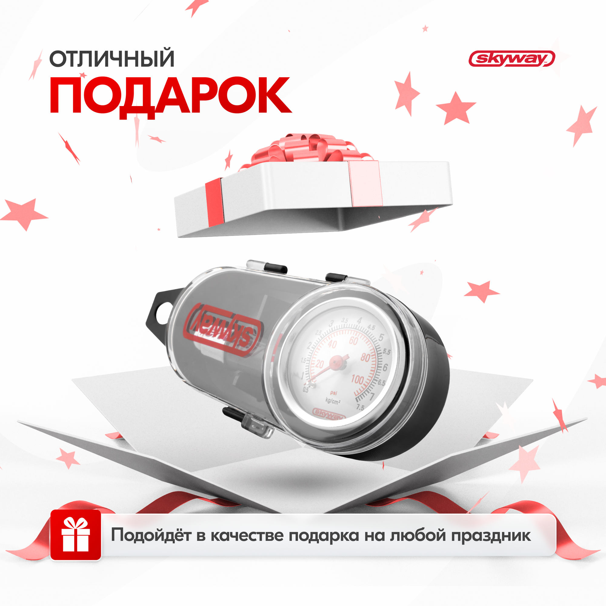 10 цен на Манометр Skyway в метал. корпусе 7,5 АТМ в пластиковом футляре