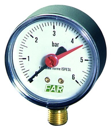 Отзывы на Манометр радиальный FAR, Ø63 мм, шкала 0-6 бар, 1/4" (FA 2500 R06)