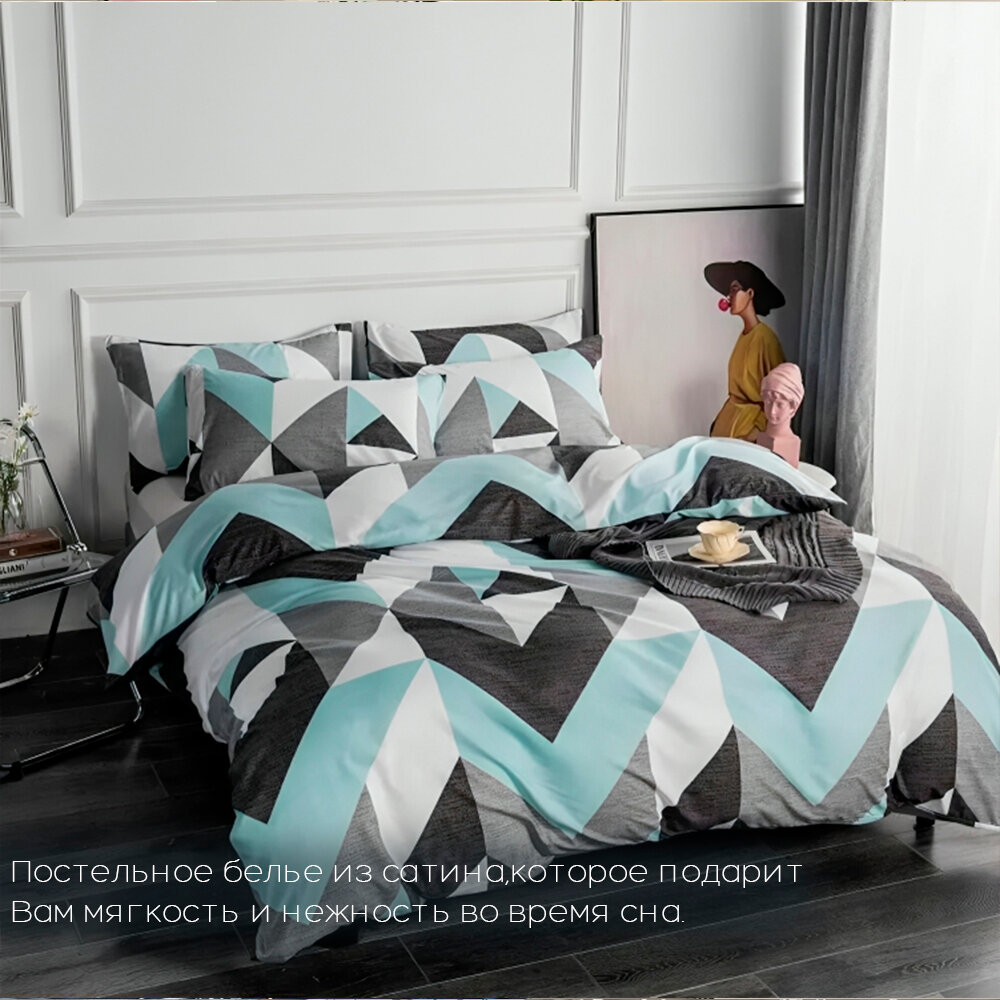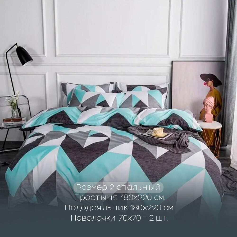 Постельное белье Сатин 2 спальный с простыней на резинках по углам Наволочки 70x70 Хлопок Aimee SAYA HOME Зигзаг 2 190 ₽