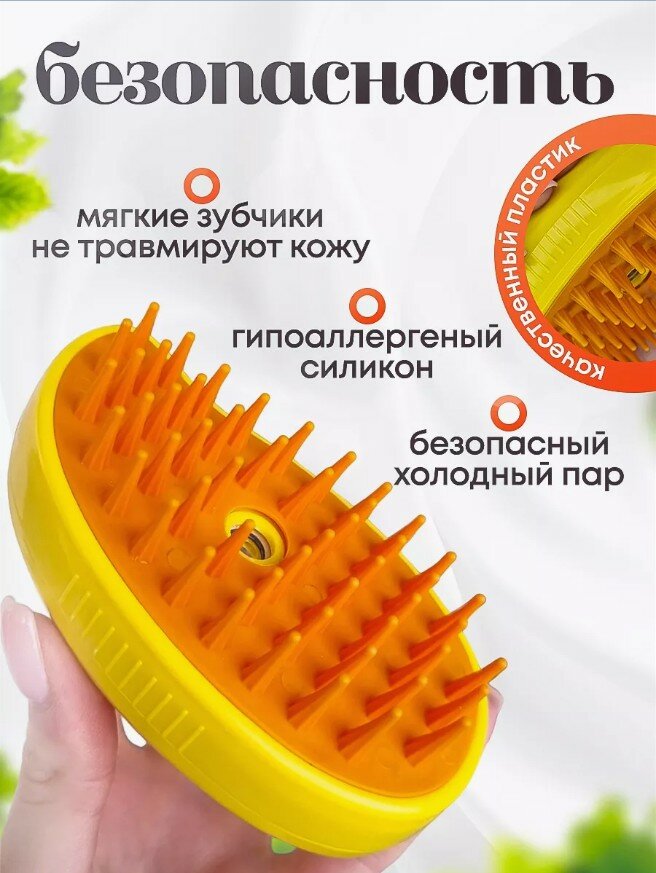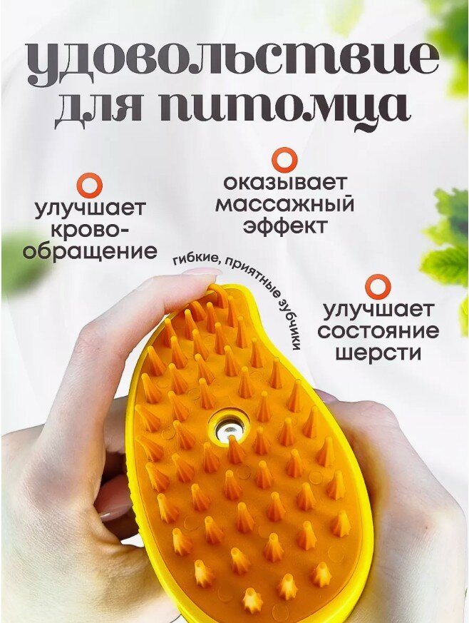 Паровая щетка для кошек и собак силиконовая расческа для животных 3 в 1 желтая информация: