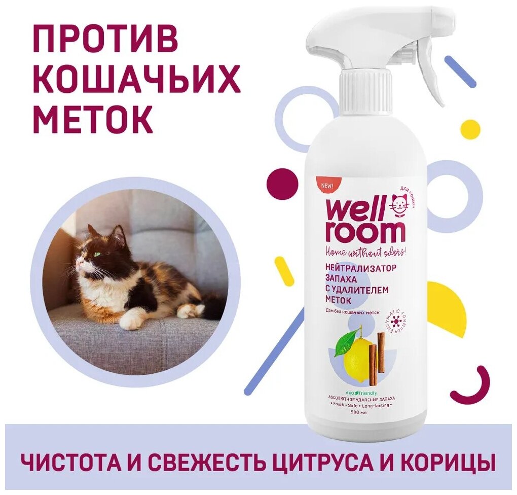 Нейтрализатор запаха Wellroom против меток кошки, 500мл, корица-цитрус 370 ₽