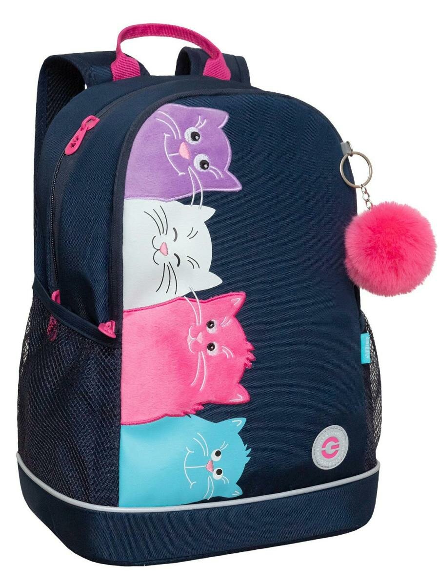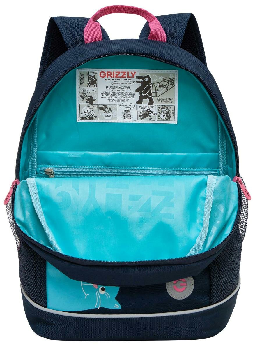 Рюкзак детский Grizzly, 22*28*10см, 1 отделение, 3 кармана, укрепленная спинка, синий (арт. 353541)