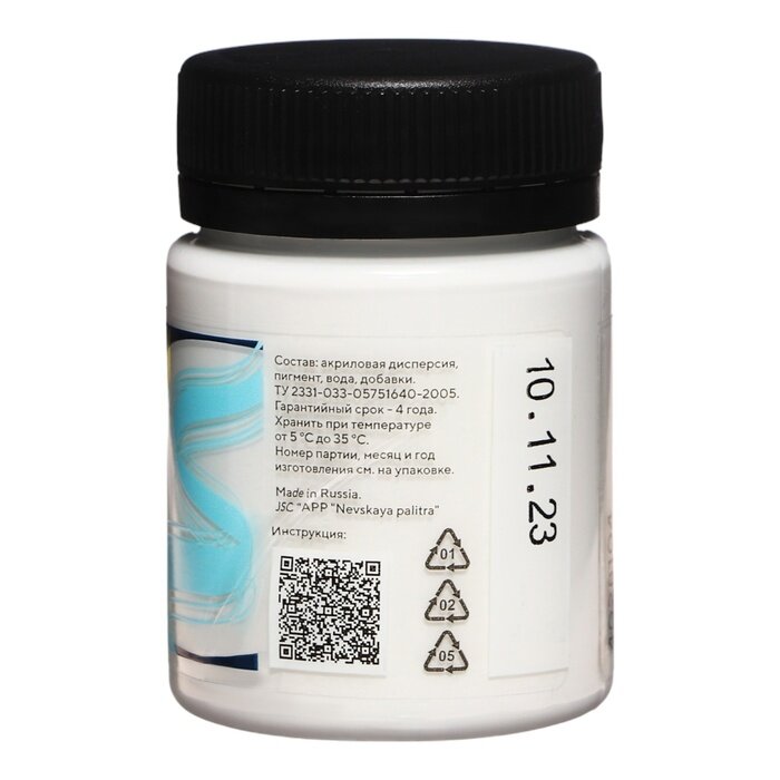 Краска акриловая для рисования по ткани Невская палитра DECOLA, 50 мл, экстра белая