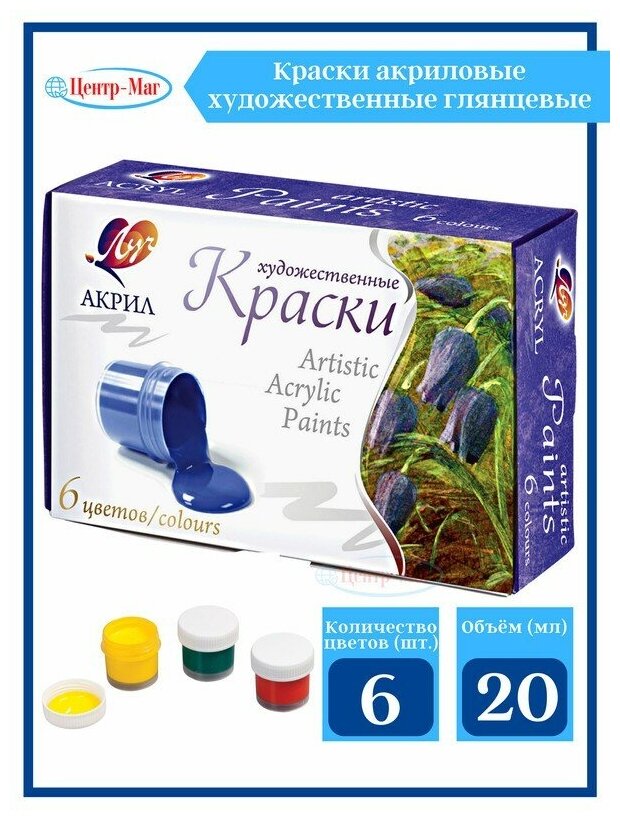 Краски акриловые Луч художественные , 6 цветов по 20 мл, в баночках, 22С 1408-08