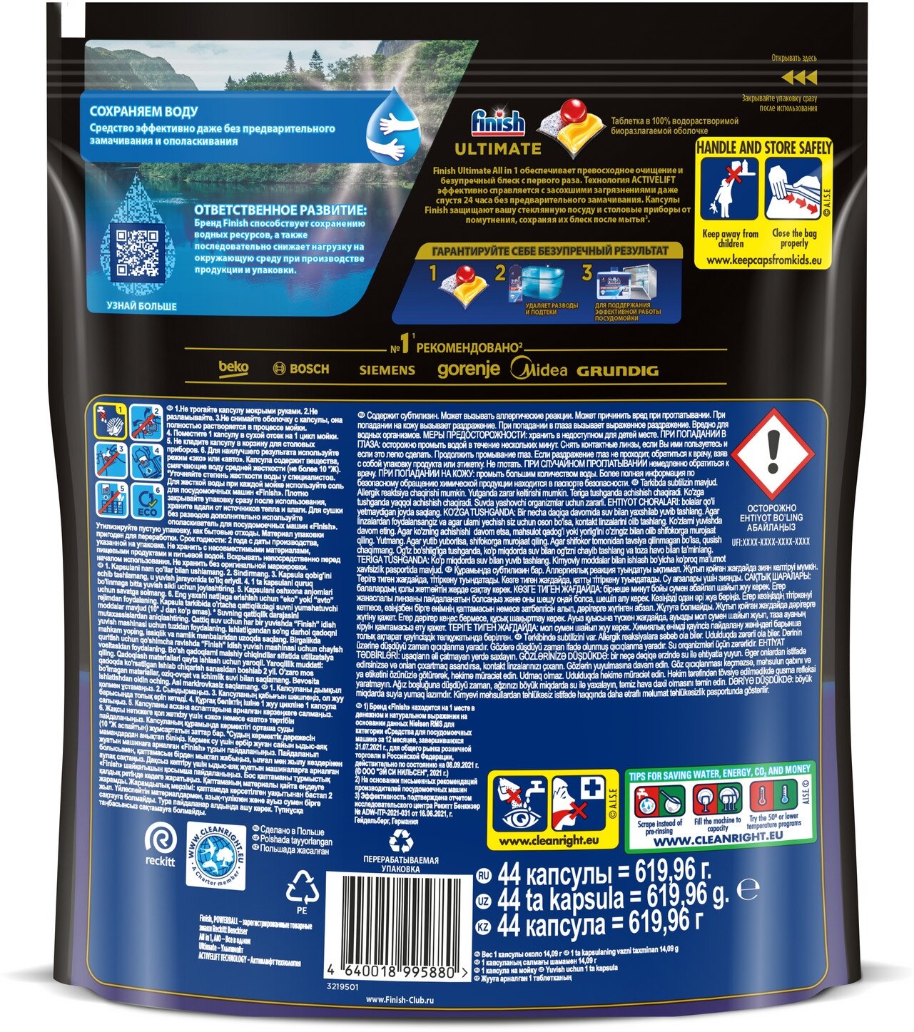 Капсулы для посудомоечных машин Finish Ultimate с ароматом Лимон бесфосфатные, 44 шт информация: