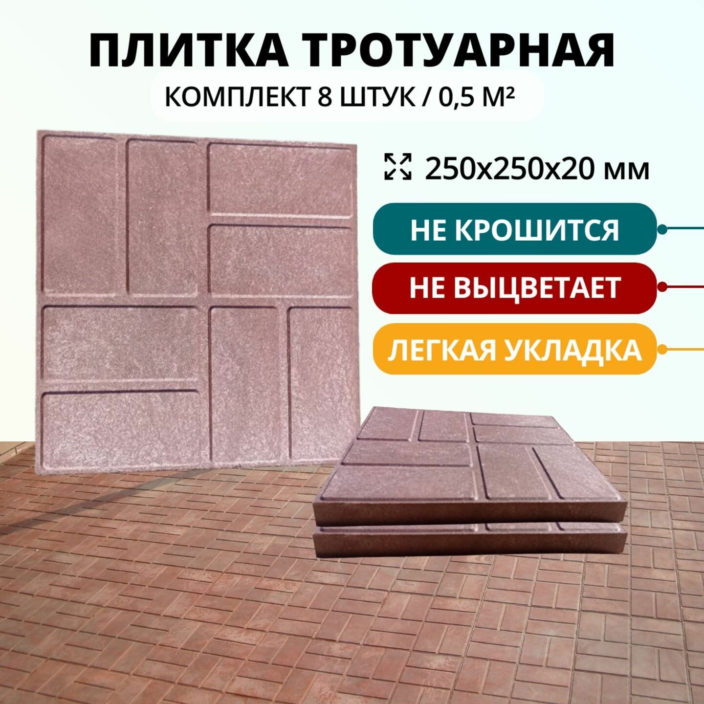 Плитка для садовых дорожек полимерпесчаная 25х25х2 см, шоколадная, 8 шт информация: