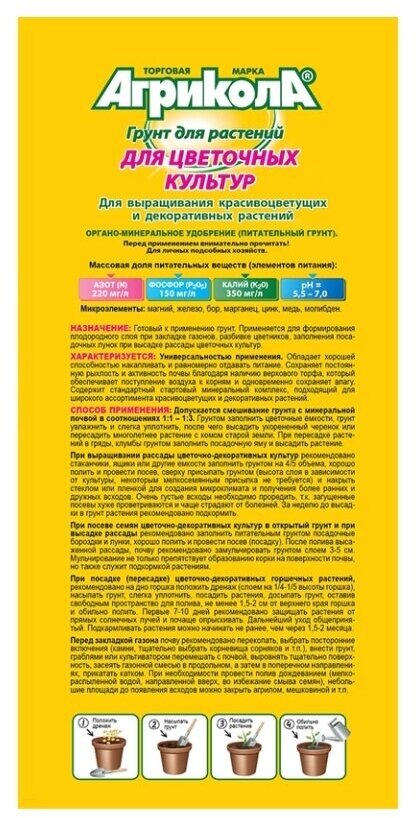 Агрикола Грунт Цветочный 10 л информация: