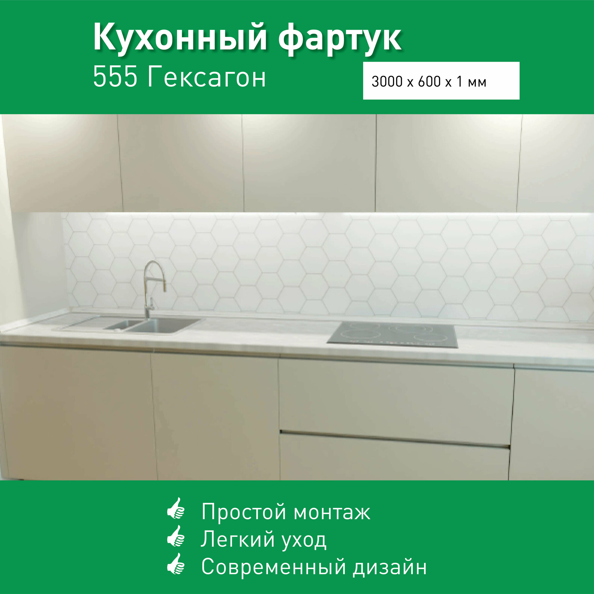 Фартук для кухни на стену из ПВХ Гексагон 3000*600мм термопечать информация: