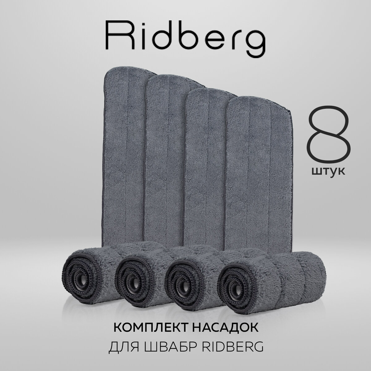Тряпка / Сменные насадки для швабры с распылителем Ridberg Spray Mop TB500 8 шт. (Grey) информация: