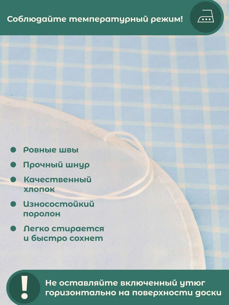 10 цен на Чехол для гладильной доски, хлопок, подкладка поролон 122х42см, "Голубая клетка"