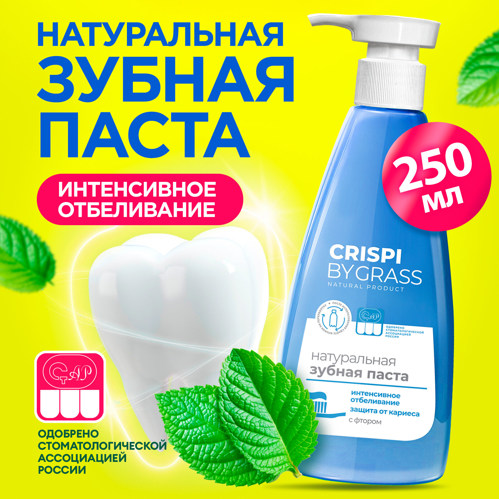 Отбеливающая зубная паста Grass Crispi 250ml с дозатором информация: