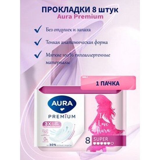AURA PREMIUM Прокладки женские гигиенические SUPER 8шт