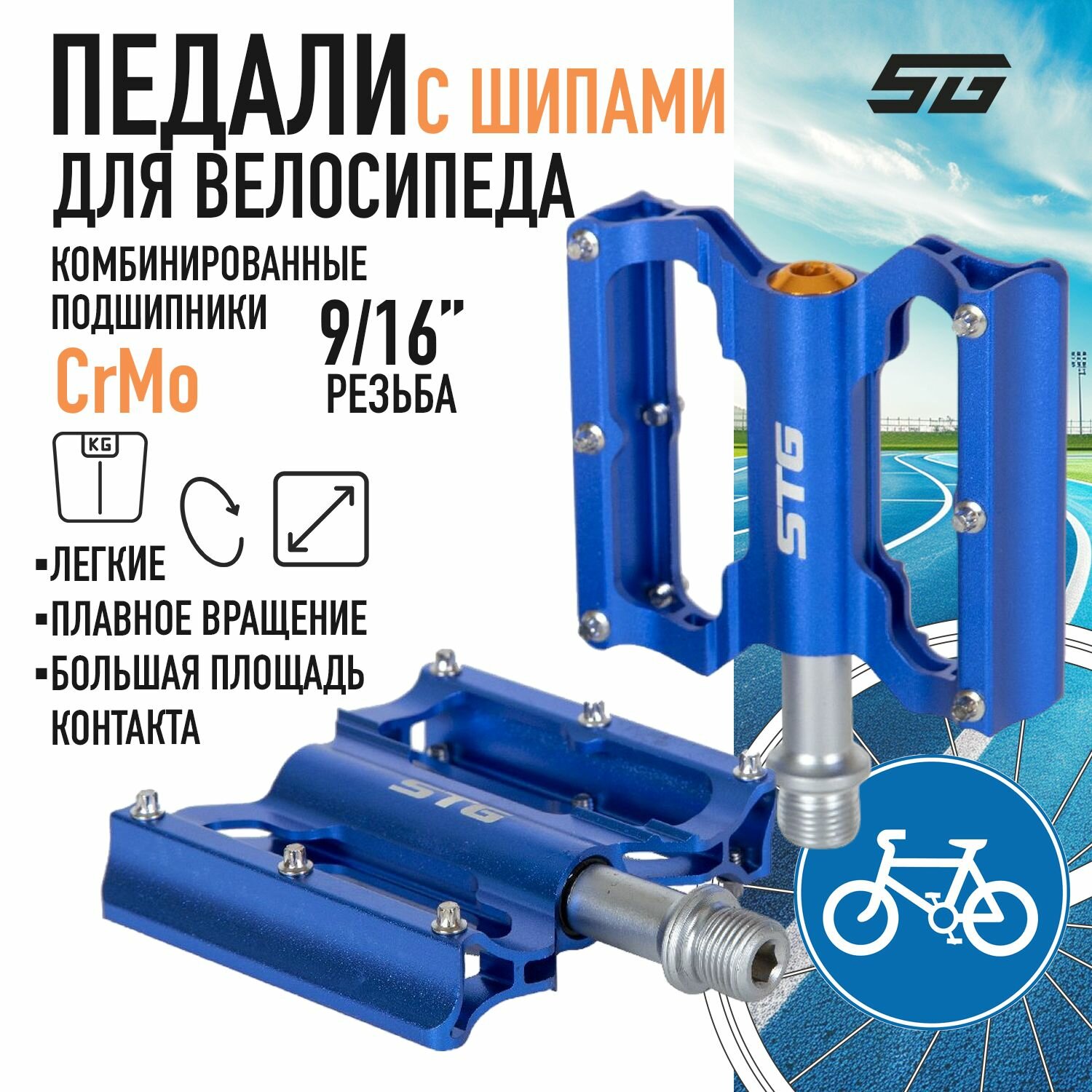 Педали STG BC-PD213 алюминий, промышленные подшипники: Голубой. информация: