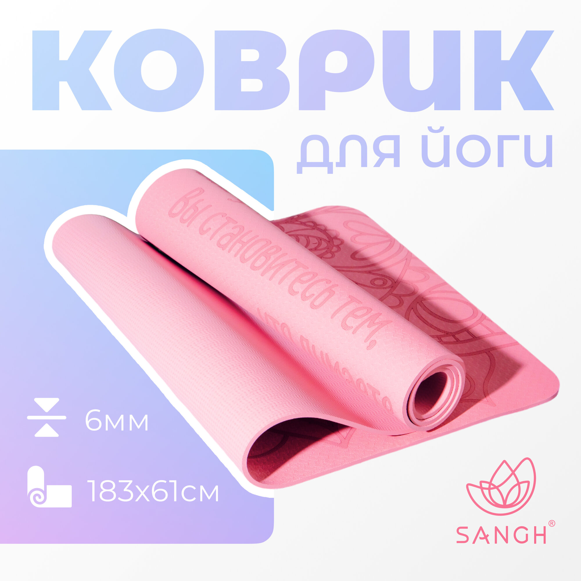 Коврик для йоги Sangh «Будда», 183х61х0,6 см, цвет пастельный розовый информация: