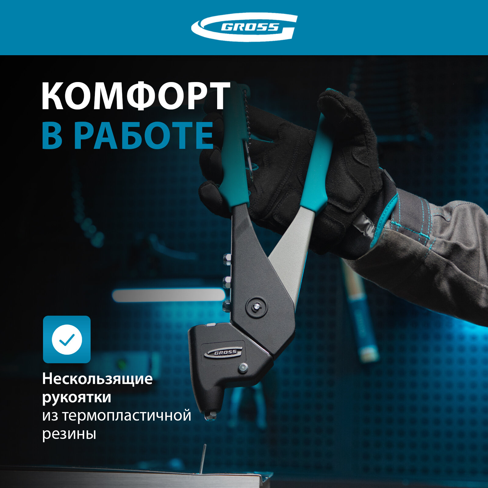 Заклёпочник GROSS литой, усиленный, поворотный 0-360*, заклёпки 2,4-4,8мм . 4 955 ₽
