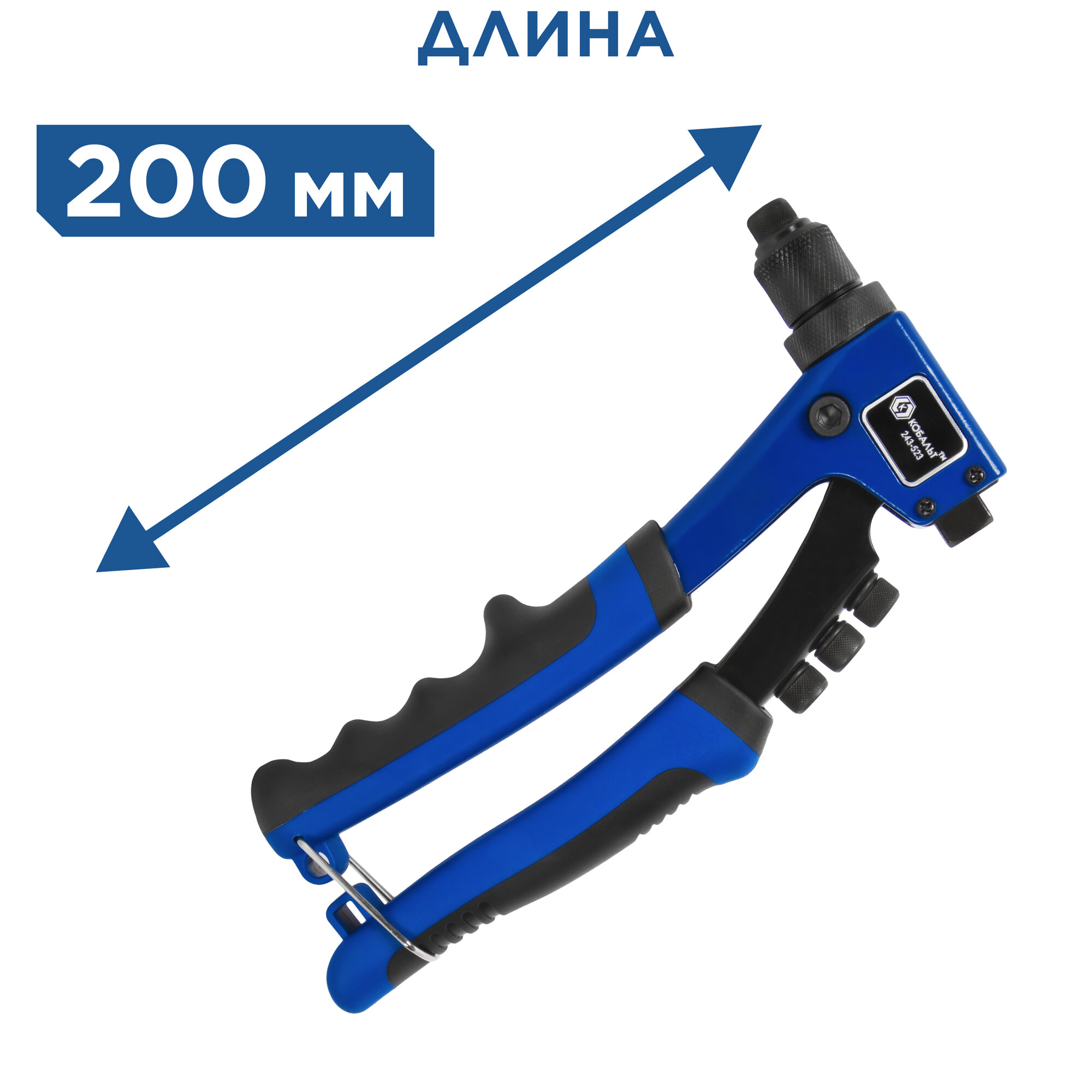 Заклепочник одноручный кобальт 210 мм, усиленный, заклепки 2,4-3,2-4,0-4,8 мм, блистер информация: